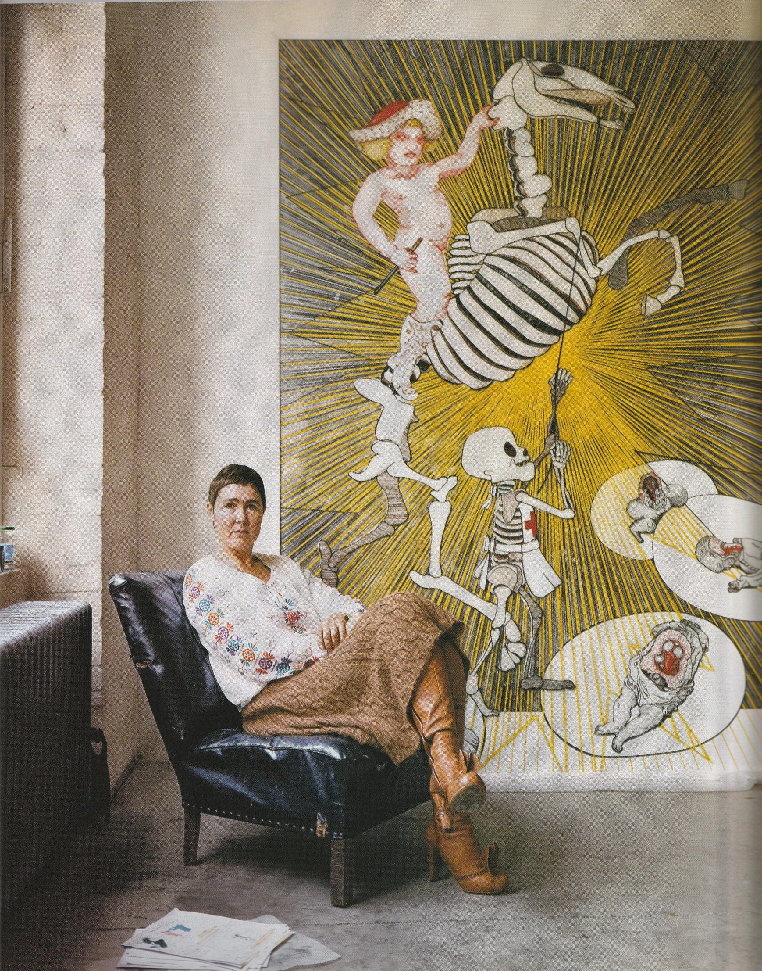 Everything that the prolific artist conjures begins with drawings at her studio in Berlin, where she moved for art school in the late ’90s and still lives today, with her partner, artist Gregor Hildebrandt, and their son. The studio is located in a historic industrial complex in the eastern neighborhood of Oberschöneweide, now a hub for artists and other creatives.